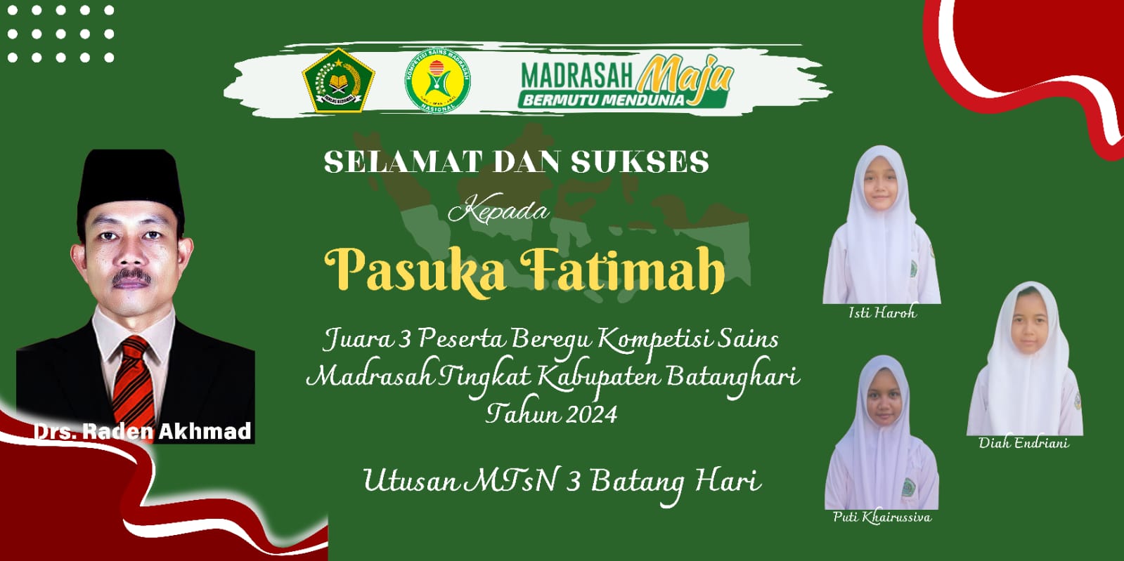 Kepala MTs Negeri 3 Batang Hari Drs. Raden Akhmad mengatakan meskipun belum berkesempatan lajut ke tingkat Provinsi, beliau merasa bangga dan berterima kasih kepada para Pembimbing, Pembina dan Peserta KSM seluruhnya.