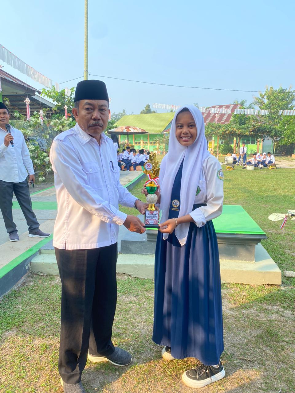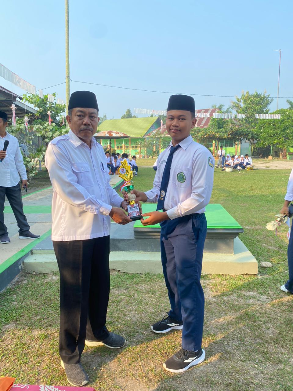 Hal ini disampaikan Selepas Upacara Bendera Rutin Senin (26/8/2024) pagi. Pada kesempatan ini, Piala diserahkan Langsung oleh Drs. Raden Akhmad kepada siswa dan siswi yang Juara.