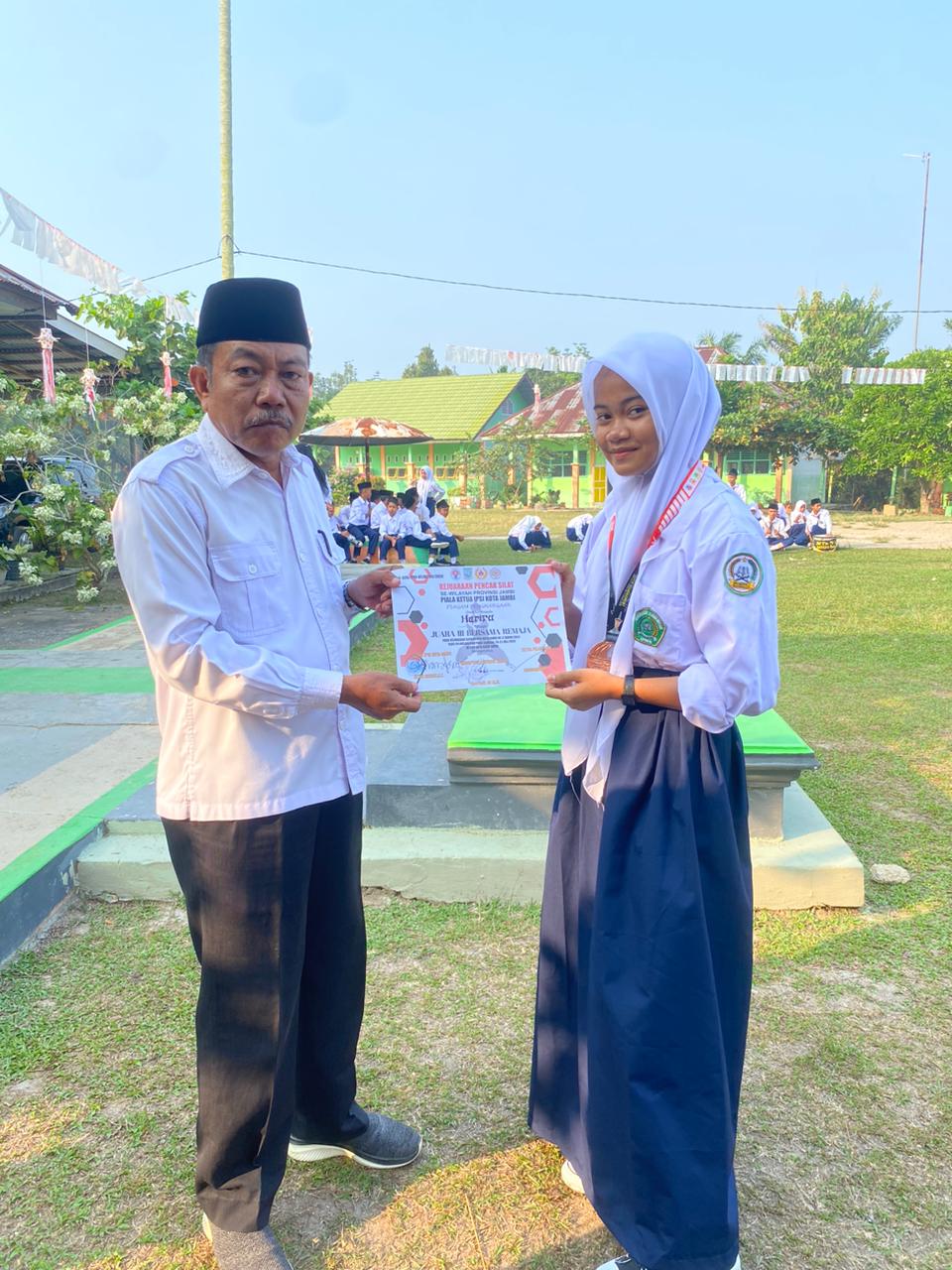 Batang Hari (MTsN 3 ) – MTs Negeri 3 Batang Hari kembali meraih Juara pada Lomba Gerak Jalan HUT RI Ke-79 Tahun 2024 Sabtu (17/8/2024) di Kelurahan Sridadi, dan Lomba Pencak Silat Remaja Tingkat Kota Jambi yang berlangsung pada 29-31 Juli 2024 di Gor Kota Baru, Jambi.
