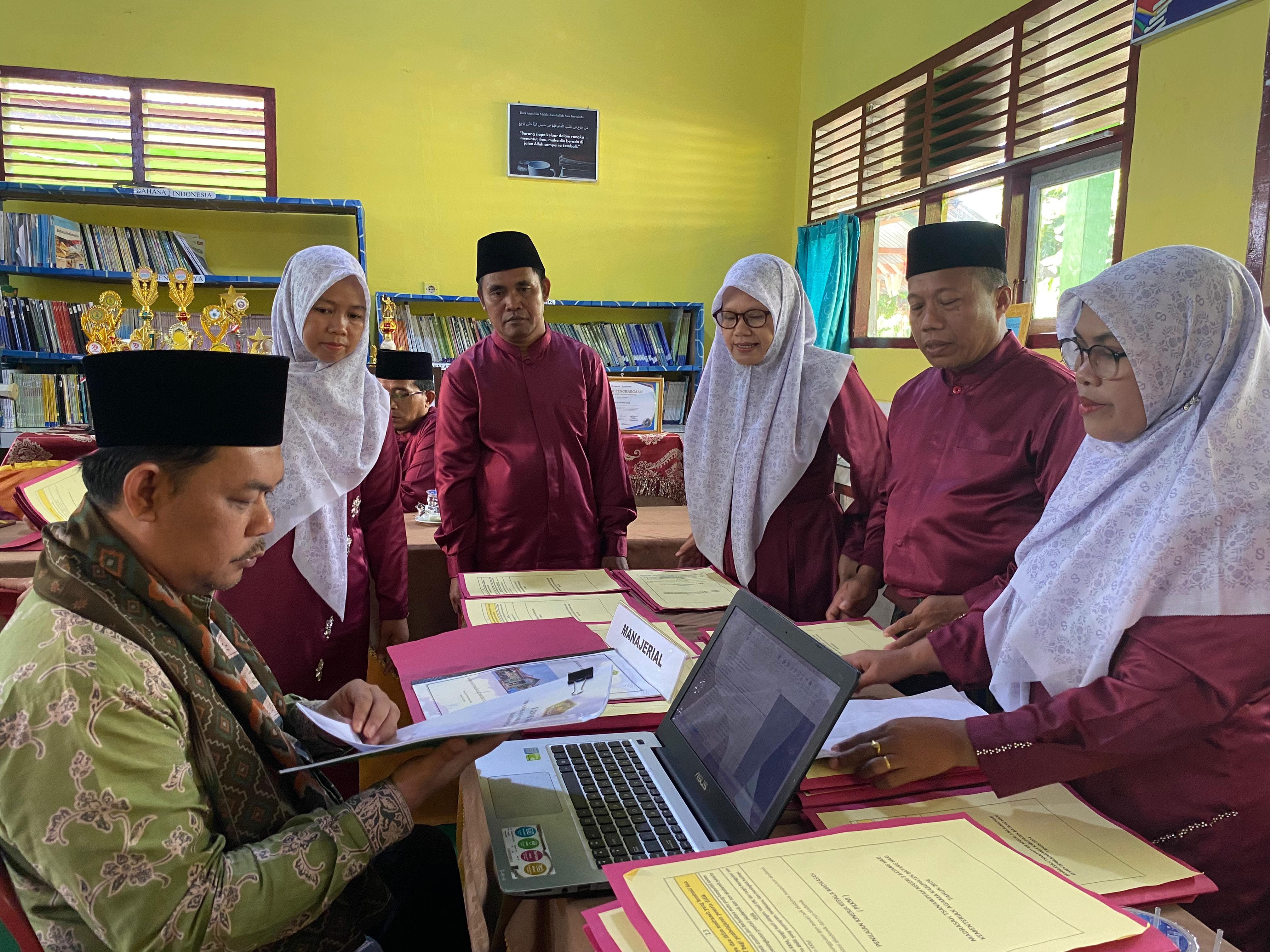 Batang Hari (Humas MTsN 3 Batang Hari) - MTsN 3 Batang Hari pada Sabtu (30/11/2024) menjalani Penilaian Kinerja Kepala Madrasah (PKKM). Kegiatan yang dilaksanakan di ruang perpustakaan ini salah satu tujuannya adalah untuk Menentukan nilai kinerja kepala madrasah sebagai dasar untuk penetapan angka kredit dan pengembangan keprofesioan berkelanjutan serta mengukur sejauh mana kompetensi yang dimiliki oleh seorang kepala madrasah.