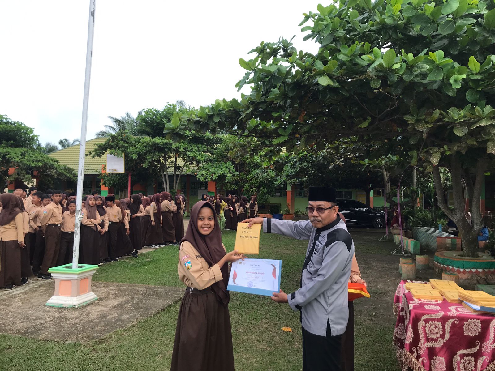 Batanghari, (Humas MTsN 3 Batanghari) —MTsN 3 Batanghari melaksanakan kegiatan pembagian rapor semester ganjil Tahun Pelajaran 2024/2025 serta pengumuman pemenang lomba Class Meeting. Kegiatan ini berlangsung dengan tertib dan lancar di lapangan MTsN 3 Batanghari pada Sabtu, (21/12/2024).