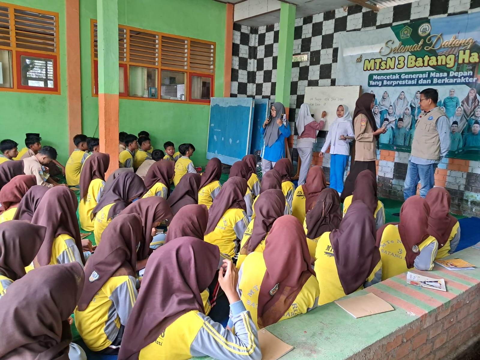 Batanghari (MTsN 3) - Jelang Tahun Pelajaran 2025/2026 siswa kelas IX MTsN 3 Batanghari terima sosialisasi Penerimaan Peserta Didik Baru (PPDB) dari SMK Kesehatan Fania Salsabila di depan Kantor Majelis Guru, Sabtu (11/1/2025).