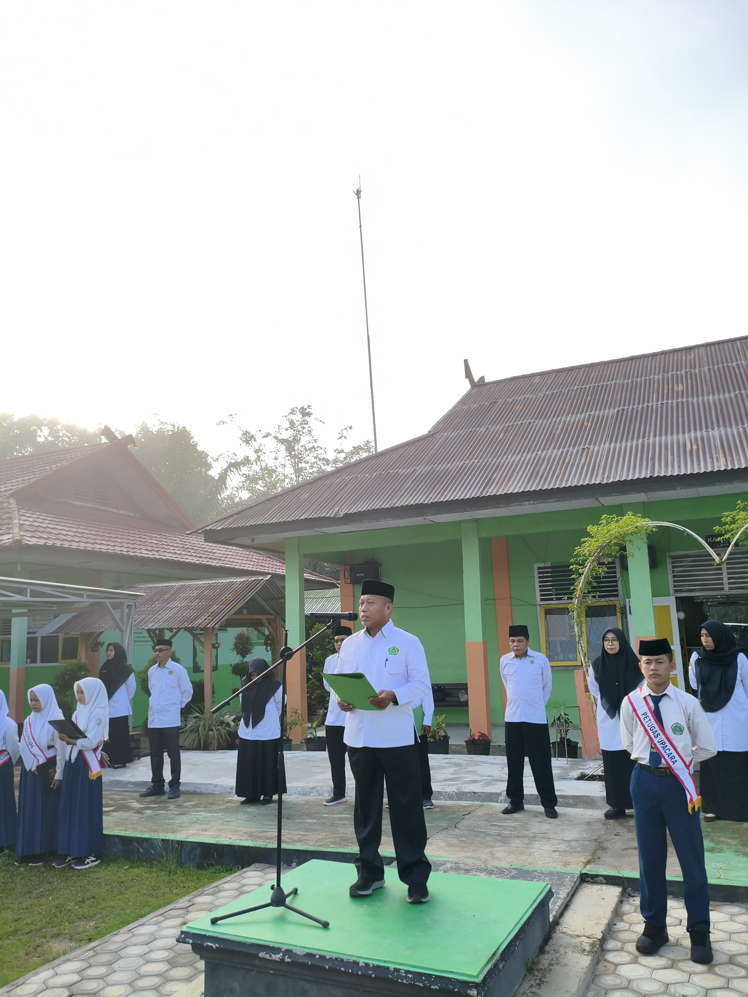 Bertindak sebagai pembina upacara, Plt. Kepala MTsN 3 Batang Hari, Muhammad Zaki, S.Pd.I., menyampaikan amanat yang menekankan pentingnya menanam semangat kebangsaan sejak dini. “Pancasila bukan hanya untuk dihafal, tapi harus menjadi pegangan dalam berpikir, bersikap, dan bertindak di tengah keberagamanâ€. Tegasnya.