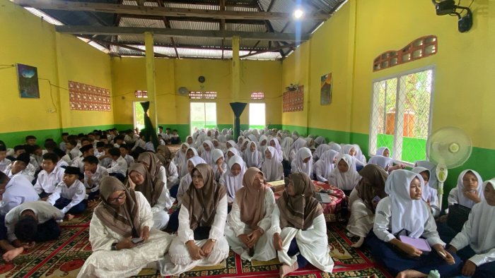 Batang Hari (MTsN 3) - MTsN 3 Batang Hari menggelar peringatan Maulid Nabi Muhammad SAW dengan penuh khidmat di musala Albarokah pada Selasa (16/9/2025). Kegiatan ini diisi dengan tausiah dari Ust. Bambang Nurjaman, M.Pd., yang diundang khusus sebagai penceramah.