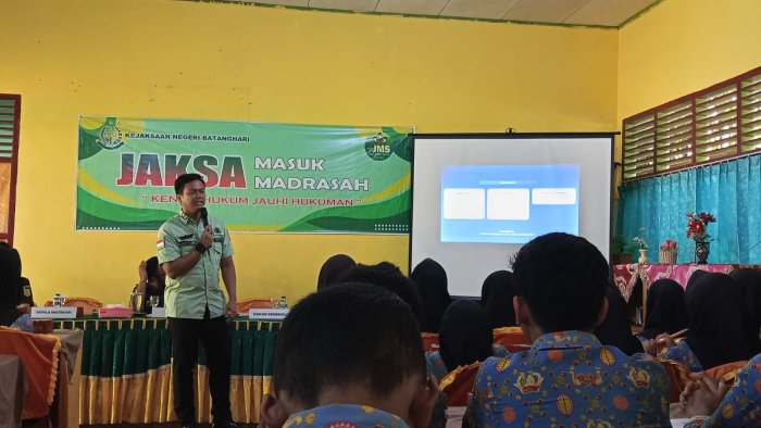 Batang Hari (MTsN 3) - Kejaksaan Negeri Batang Hari kembali melaksanakan program �Jaksa Masuk Madrasah� di MTsN 3 Batang Hari, Rabu (18/9). Kegiatan ini diikuti oleh sebanyak 50 siswa terpilih dengan tujuan menanamkan pemahaman hukum sejak dini agar generasi muda mampu menjauhi perilaku menyimpang yang dapat berakibat pada pelanggaran hukum.