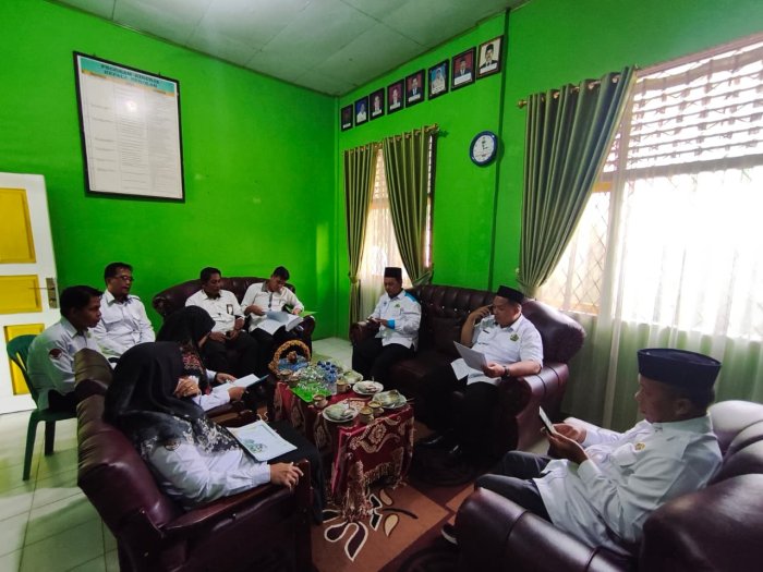Kegiatan Monev ini dipimpin langsung oleh Kasi Penmad, Aprizal, M.Pd., didampingi oleh Pengawas Madrasah, Ahmad Sholahuddin, M.Pd.I., beserta tim pendamping. Kehadiran mereka disambut hangat oleh Plt. Kepala Madrasah, Muhammad Zaki, S.Pd.I., bersama jajaran wakil kepala, guru dan tenaga kependidikan.