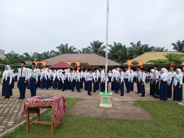 Batang Hari (MTsN 3) - Madrasah Tsanawiyah Negeri (MTsN) 3 Batang Hari resmi melantik pengurus Organisasi Siswa Intra Madrasah (OSIM) periode tahun pelajaran 2025/2026. Kegiatan pelantikan berlangsung khidmat di aula madrasah pada Senin, 10 November 2025, dengan dihadiri oleh Plt. Kepala MTsN 3 Batang Hari, Muhammad Zaki, S.Pd.I, dewan guru, serta seluruh siswa madrasah.