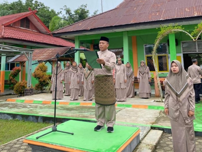 Batang Hari (MTsN 3) - MTsN 3 Batang Hari menggelar upacara peringatan Hari Guru Nasional (HGN) ke-80 tahun 2025 dengan penuh khidmat dan semangat kebersamaan pada Selasa, 25 November 2025. Upacara berlangsung di lapangan madrasah dengan petugas upacara yang istimewa, yakni gabungan antara guru dan pegawai Tata Usaha, sebagai wujud solidaritas serta penghormatan kepada seluruh pendidik dan tenaga kependidikan.