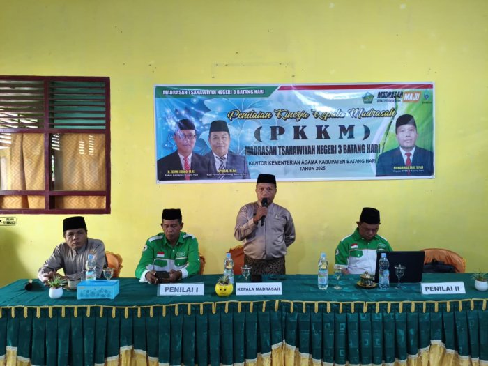 Batang Hari (MTsN 3) - MTsN 3 Batang Hari kembali mencatatkan pelaksanaan Penilaian Kinerja Kepala Madrasah (PKKM) tahun 2025 dengan sukses. Kegiatan yang berlangsung di madrasah tersebut berjalan lancar dan tertib, menghadirkan dua tim penilai yang terdiri dari Ketua Pokjawas serta Pengawas Madrasah. Selasa (9/12/2025).