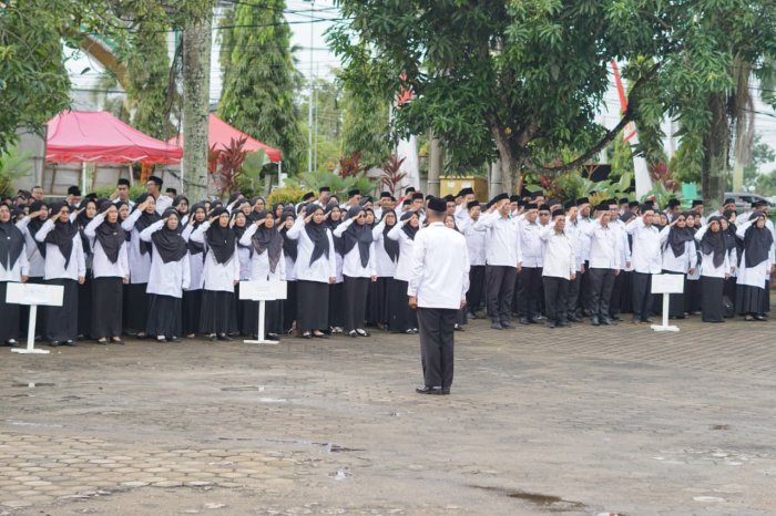 Batang Hari (MTsN 3) - Dalam rangka memperingati Hari Amal Bakti (HAB) Kementerian Agama ke-80, keluarga besar MTsN 3 Batang Hari turut hadir dan mengikuti upacara yang digelar di lapangan Kantor Kementerian Agama Kabupaten Batang Hari pada Sabtu, (3/1/2026). Kegiatan ini dihadiri oleh PLT Kepala Madrasah, para guru, pegawai, serta perwakilan siswa MTsN 3 Batang Hari.
