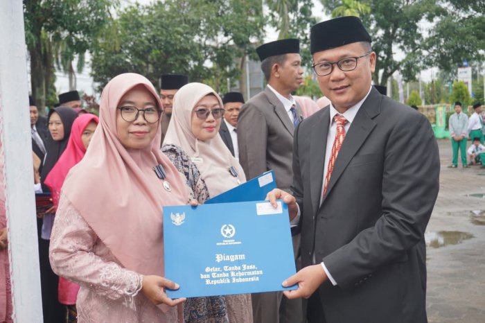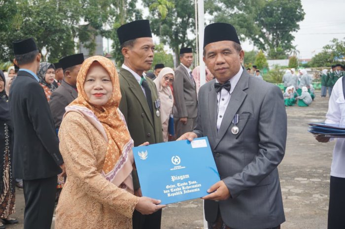 Batang Hari (MTsN 3) - Dalam momentum peringatan Hari Amal Bakti (HAB) Kementerian Agama ke-80 tahun 2026, tiga guru MTsN 3 Batang Hari menerima penghargaan bergengsi berupa penyematan dan piagam Tanda Kehormatan Satyalencana atas dedikasi mereka dalam dunia pendidikan.