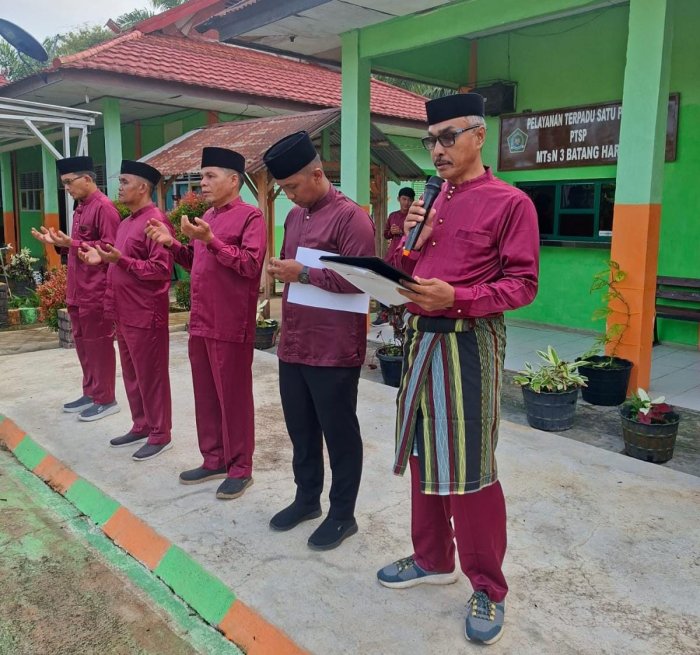 Batang Hari (MTsN 3) - MTsN 3 Batang Hari melaksanakan upacara peringatan Hari Ulang Tahun (HUT) ke-69 Provinsi Jambi dengan penuh khidmat. Momentum istimewa ini terasa semakin bermakna karena seluruh peserta upacara mengenakan busana khas Melayu Jambi di halaman madrasah pada Selasa (6/1/2026).