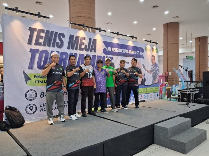 Batang Hari (MTsN 3) - Prestasi membanggakan kembali ditorehkan oleh jajaran Kementerian Agama Kabupaten Batang Hari pada peringatan Hari Amal Bakti (HAB) ke-80 Kementerian Agama tingkat Kantor Wilayah Provinsi Jambi. Pada ajang tersebut, Plt. Kepala Madrasah MTsN 3 Batang Hari, Muhammad Zaki, S.Pd.I., bersama satu pegawai Tata Usaha, Muhammad Yusuf, S.Pd.I., turut berpartisipasi mewakili Kemenag Batang Hari pada cabang lomba tenis meja bertempat di Lippo Mall pada Kamis, (8/1/2026).