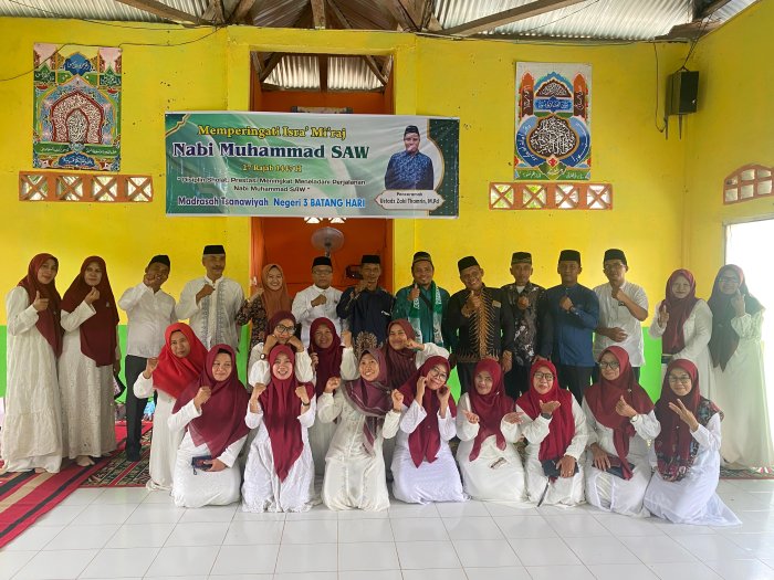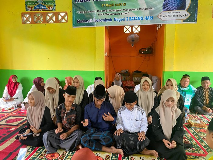 Batang Hari (MTsN 3) - MTsN 3 Batang Hari menggelar acara peringatan Isra' Miraj' Nabi Muhammad SAW pada Kamis, 22 Januari 2026. Kegiatan yang berlangsung khidmat ini dilaksanakan di Musala Al Barokah MTsN 3 Batang Hari dan diikuti oleh seluruh warga madrasah.
